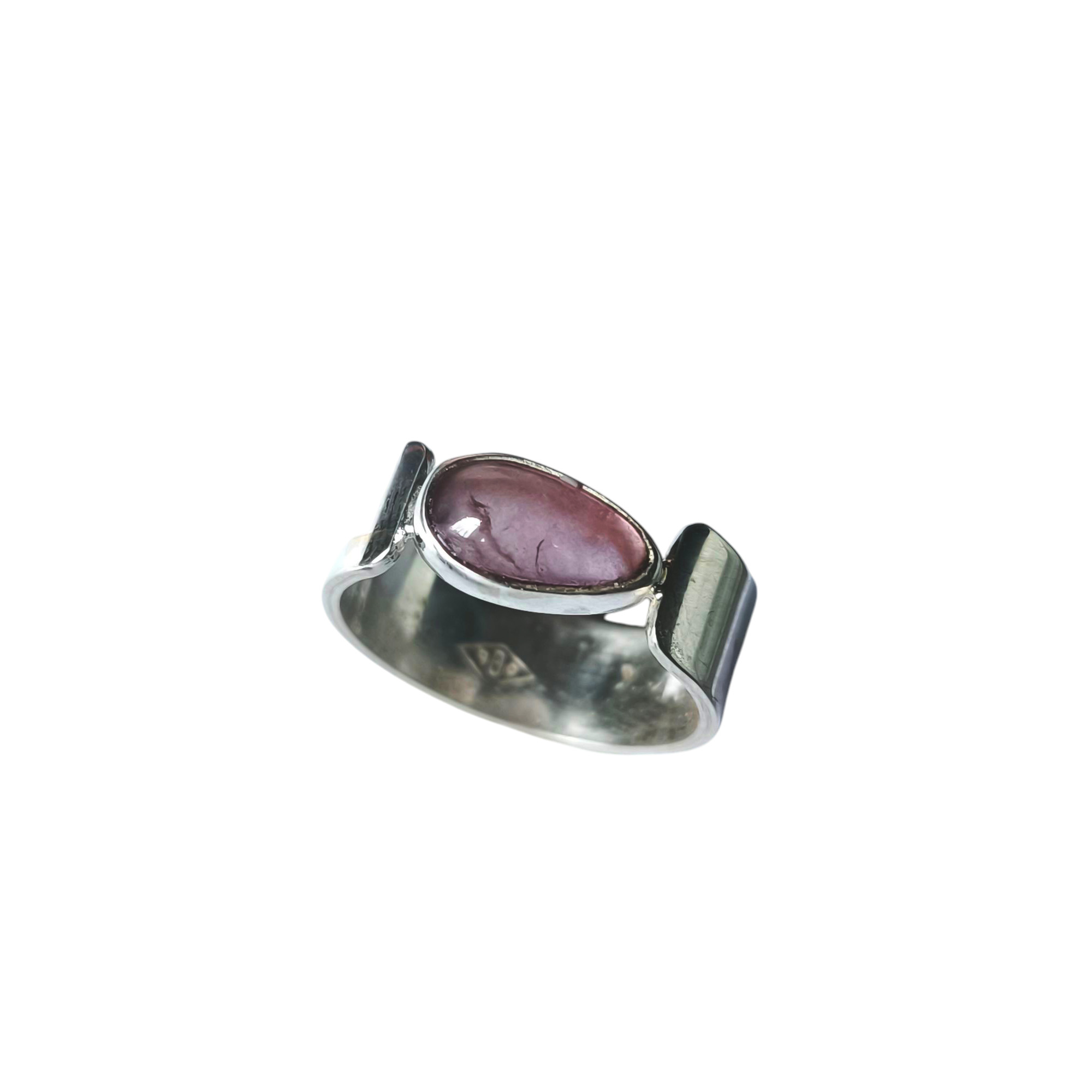 Anillo ArtesanalModelo: ARIONMineral: Amatista Rosa cabujón gotaTamaño: 8x10 mmTalle: #17