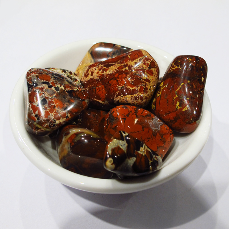 Roca formada por fragmentos angulosos, su principal componente es el jaspe con algo de cuarzo macrocristalino y calcedonia. Este jaspe ha sido sometido a un proceso de brecha tectónica, es decir que la roca madre fue fragmentada por un proceso orogénico y luego cementado. Predominan los colores rojizos debidos al hierro con algunos sectores blancos y ocres.